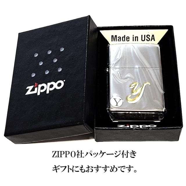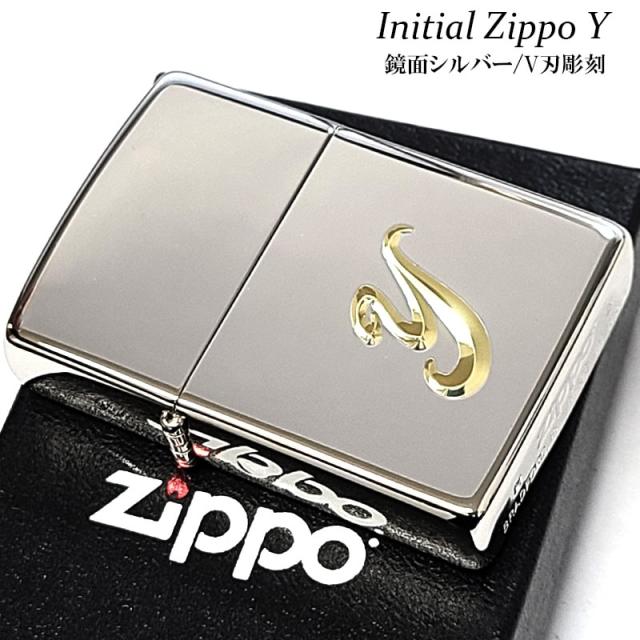 ZIPPO イニシャル Y ジッポ ライター 鏡面シルバー V刃彫刻 シンプル 金差し メンズ 銀 おしゃれ レディース ギフト プレゼント