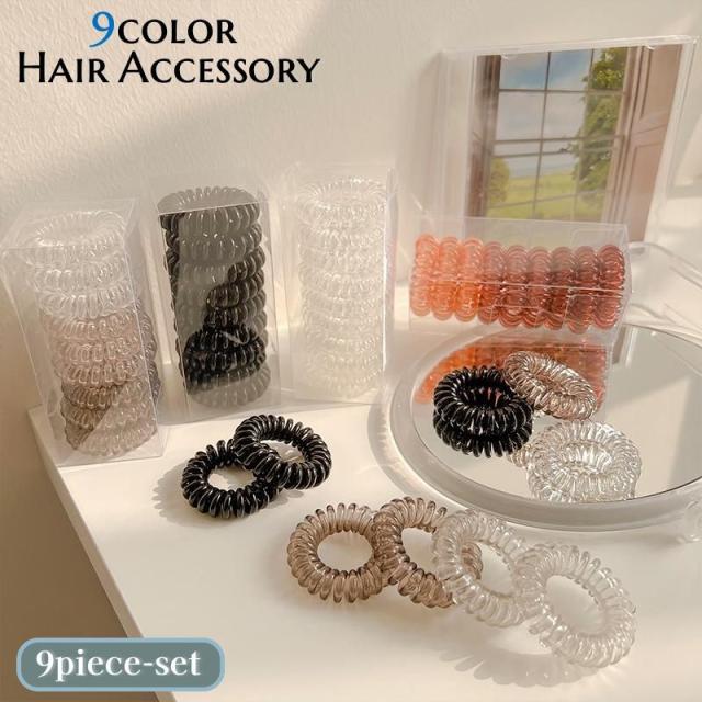 ヘアゴム スプリングゴム 9本セット 髪ゴム レディース 女性 婦人 女の子 キッズ ヘアアレンジ まとめ髪 髪飾り おしゃれ