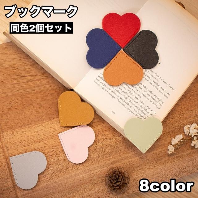 ブックマーク 2個セット 栞 しおり ブックマーカー ハート レザー調 クリップ 本 挟む 見つけやすい かわいい おしゃれ 便