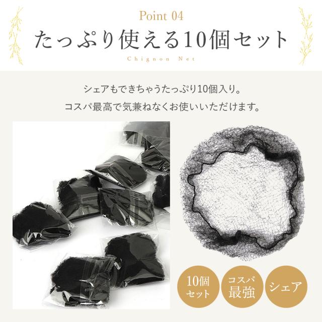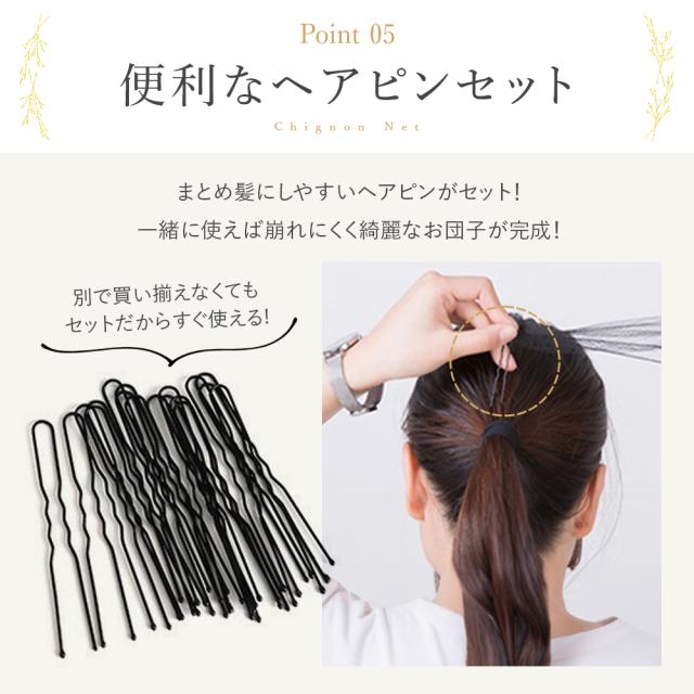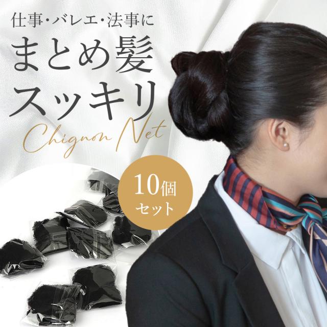 ヘアーネット ヘアネット シニヨンネット 10個セット Uピン付き 黒 アシアナネット 大人 ジュニア バレエ 食品工場 衛生 お団子 まとめ髪 ウィッグ シニヨン 個包装 お団子ネット
