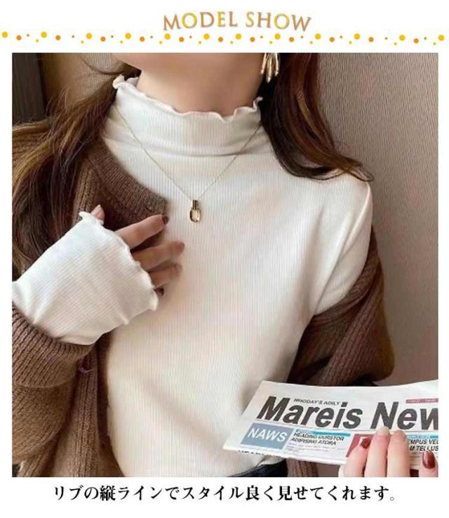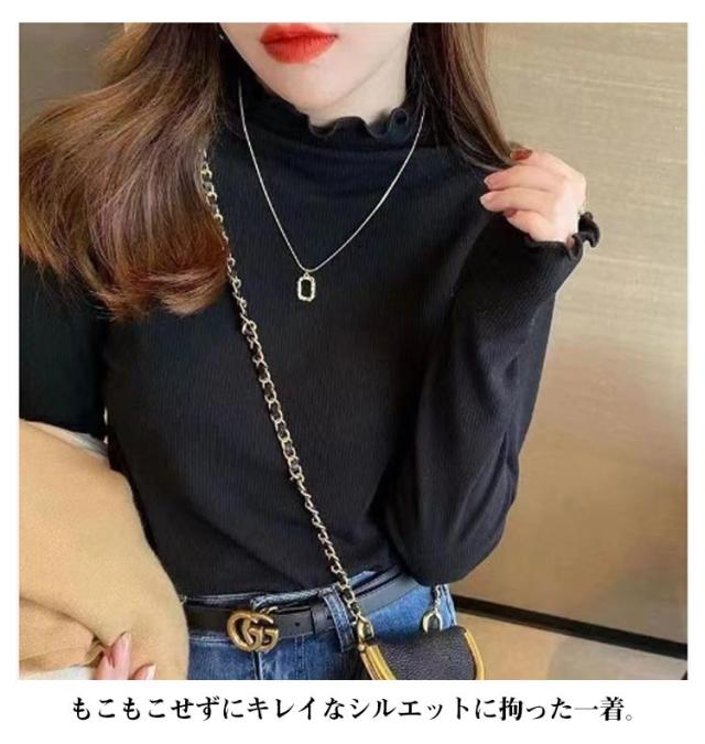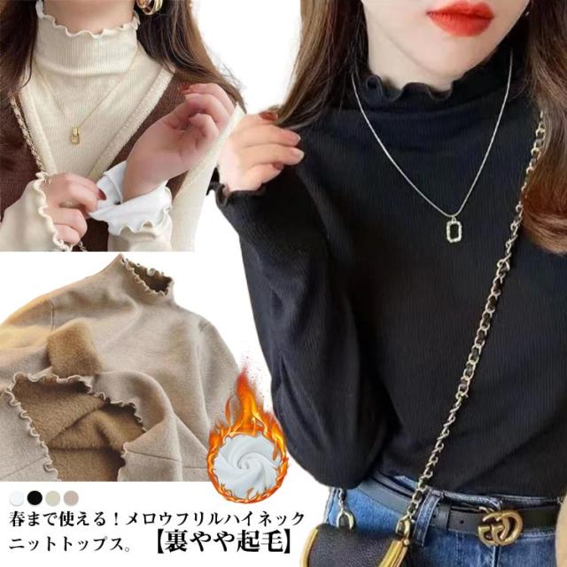 リブ ニット トップス ハイネック 裏起毛 メロウ フリル 大人可愛い レディース セーター リブニット プルオーバー 長袖 タイト タートルニット 秋冬 レイヤード 重ね着 インナー 下着 厚手 保温 防寒 あったか ストレッチ 無地 シンプル おしゃれ 【送無】