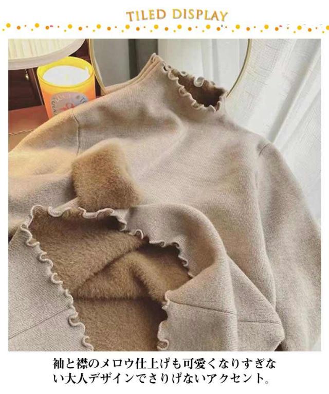 | 春まで使える!メロウフリルハイネックニットトップス。【裏やや起毛】 嬉しい裏起毛仕様で寒い冬にぴったりのニット。 もこもこせずにキレイなシルエットに拘った一着。 リブの縦ラインでスタイル良く見せてくれます。 袖と襟のメロウ仕上げも可愛くなりすぎない大人デザインでさりげないアクセント。 もちもちのニットとなめらかな肌触りの裏ファーで体感+5℃の暖かさ。 | |