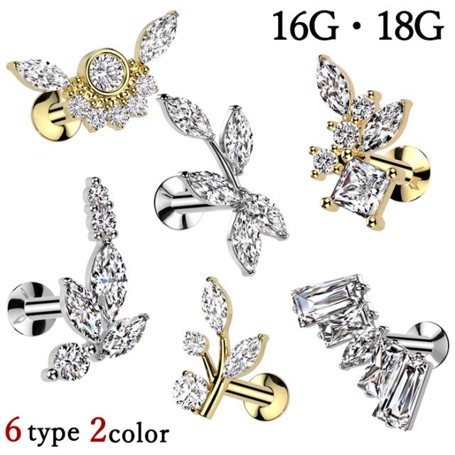 ボディピアス16G 18G ラブレットスタッド ジュエル ヴァイン リーフ ラウンド ダイヤ 蔓 葉 プッシュ ワンタッチ ラブレットスタッド 耳ピアス ヘリックス サージカルステンレス ラブレット リップ ボディーピアス