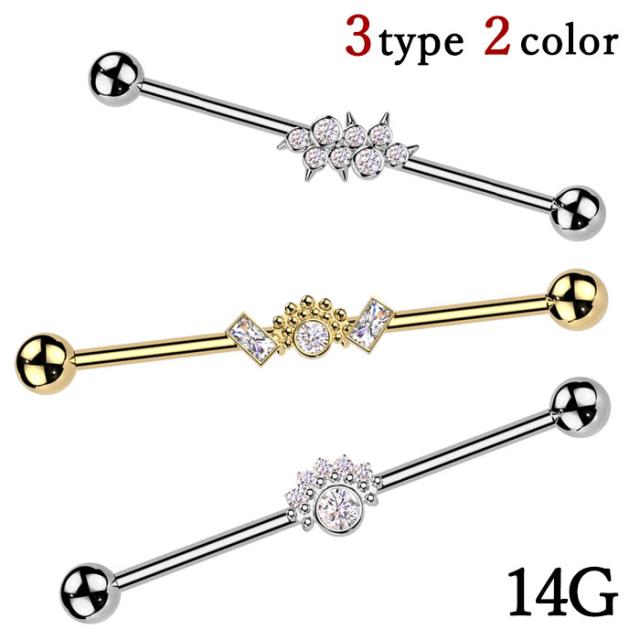 ボディピアス 14G インダストリアル ボール クラスター ジュエル ロング ストレートバーベル シルバー ゴールド 軟骨ピアス 耳ピアス ヘリックス 316L サージカル ステンレス
