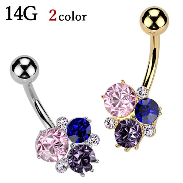 ヘソピアス 14G バナナバーベル マルチカラー ジェム ジュエル クラスター ジュエリー ボディピアス へそピ ボディーピアス ボディピ 316L サージカル ステンレス