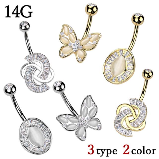 ヘソピアス 14G バナナバーベル ジュエル キャッツアイ ストーン バタフライ オーバル 変形 ジュエリー ボディピアス へそピ ボディーピアス ボディピ 316L サージカル ステンレス