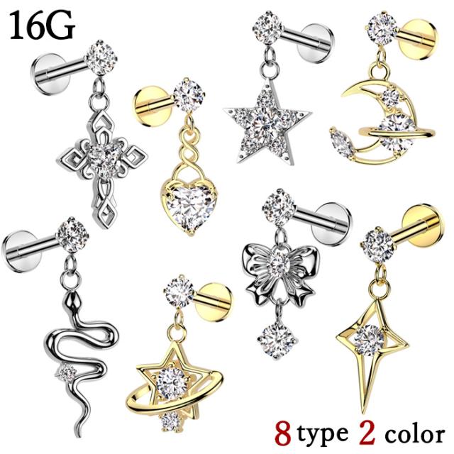 ボディピアス 16G ラブレットスタッド インターナル 内ネジ リボン スター ムーン サターン 星 月 土星 クロス 十字架 スネーク ヘビ 蛇 巳 ミニサイズ ジュエル 耳ピアス ヘリックス サージカルステンレス ラブレット リップ ボディーピアス