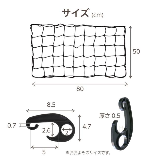 ライシン ラテックス素材 カーゴネット 80×50cm ABS樹脂 フック 8個 付き 汎用 ゴムネット ロープネット 荷物 ネット