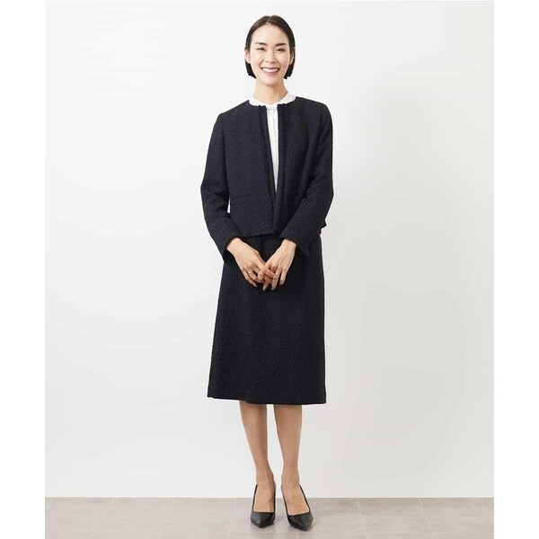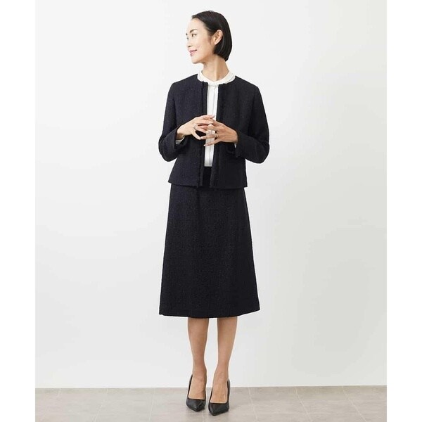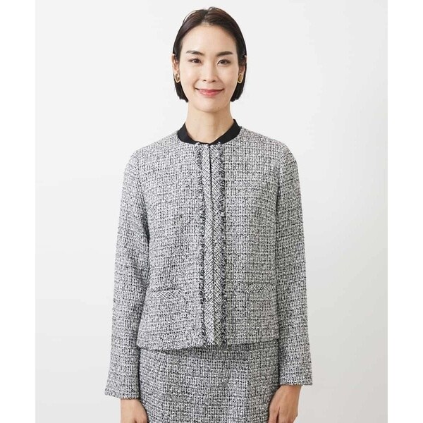 ミッシェルクラン(MICHEL KLEIN)/[セットアップ対応/洗える]ノーカラーツイードジャケット