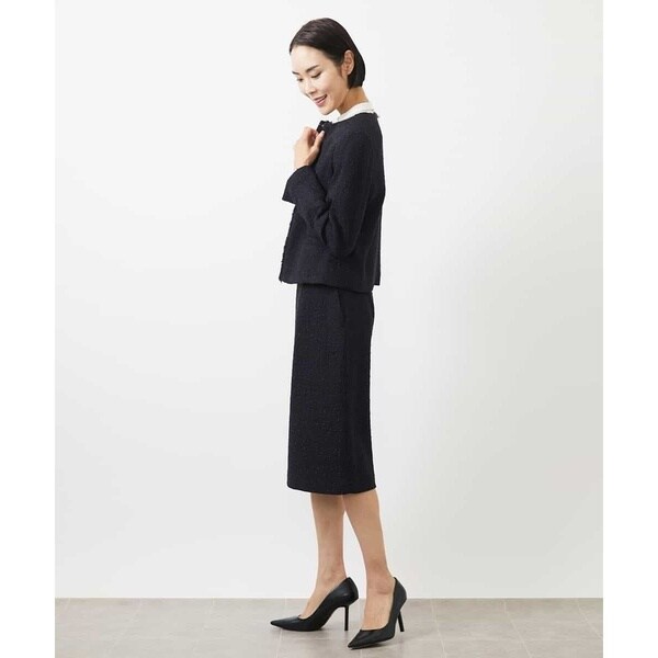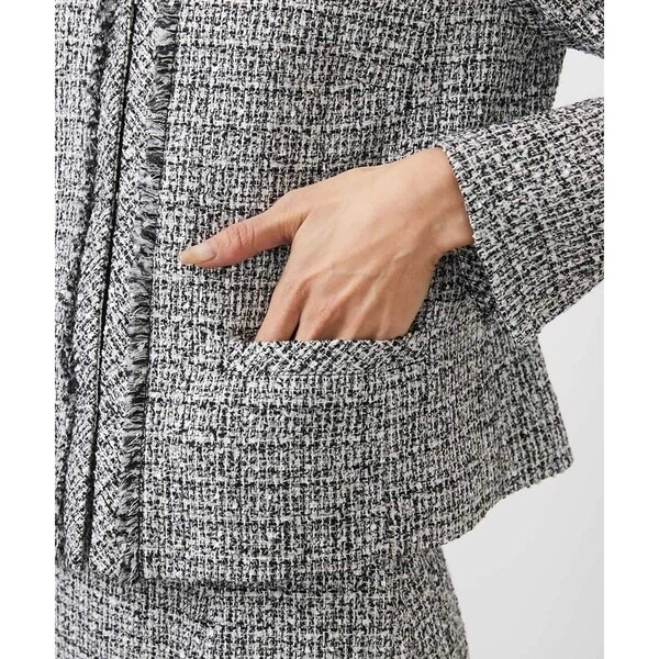 きちんとした装いが必要な場面でも品よく見えるツイードジャケット。セットアップはもちろん単品ジャケットとしてもお使いいただけます。職人が手でほどいたフリンジがデザインにアクセントを加えています。40サイズは限定店舗展開です。