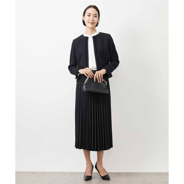 同素材ワンピース[FMEDA01390]・スカート[FMHDA01200]とセットアップでセレモニースタイルやお仕事、食事会など活躍の場が広い一着です。柔らかなサテンのブラウスやプリーツスカートと合わせたフェミニンなスタイリングもおすすめです。同素材ブラウス[FMBDA01310]もご用意しております。