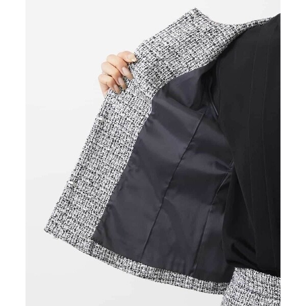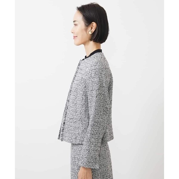 [セットアップ対応/洗える]ノーカラーツイードジャケット