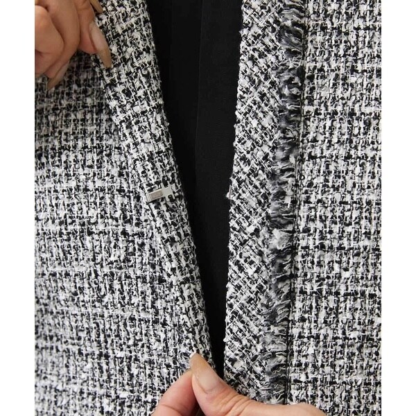 華やかなツイードのノーカラージャケット、シンプルながらも上質素材でこだわりのフリンジがアクセントに上品さを演出できます。