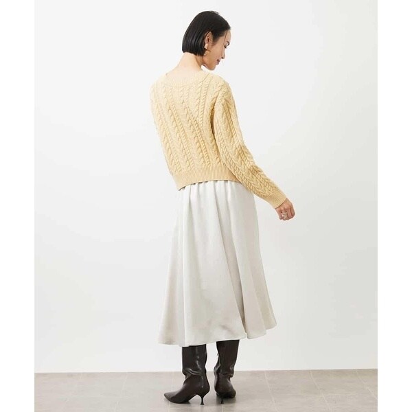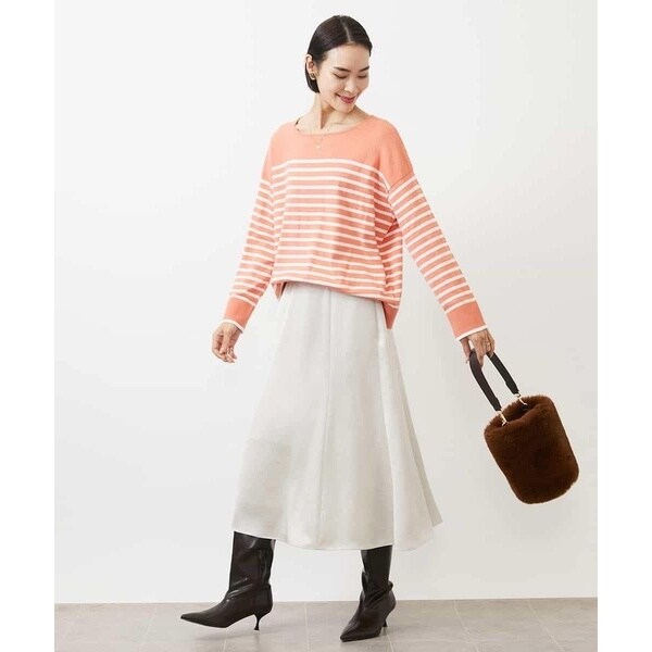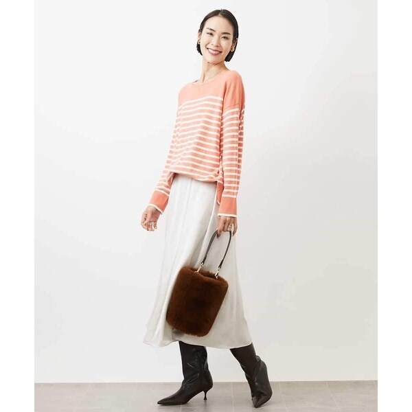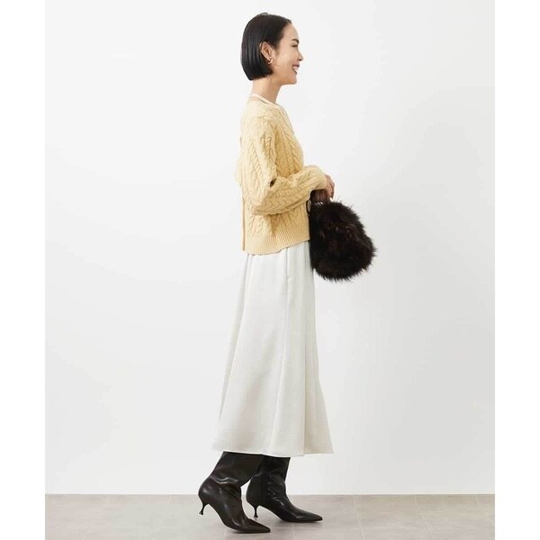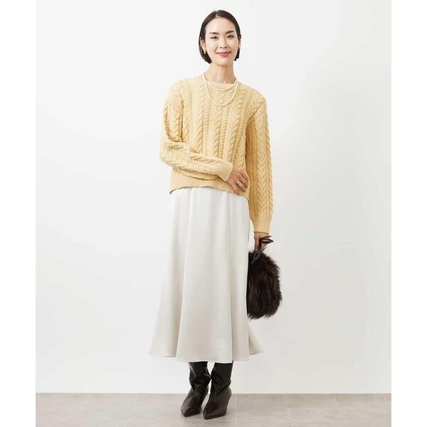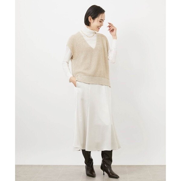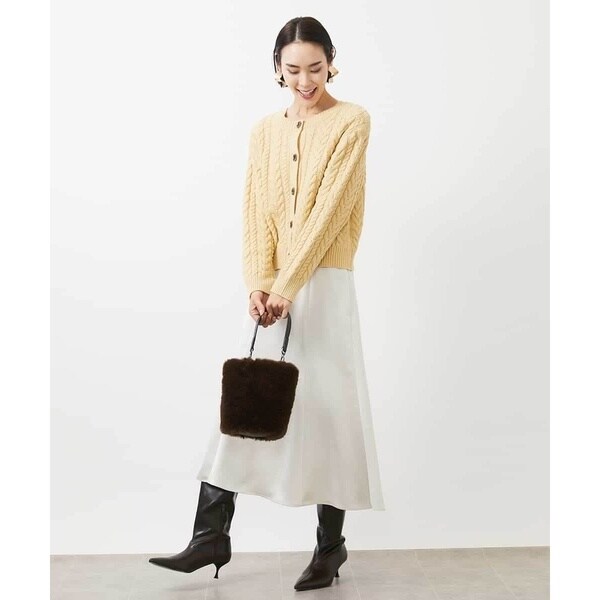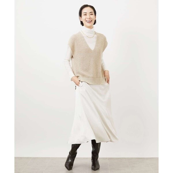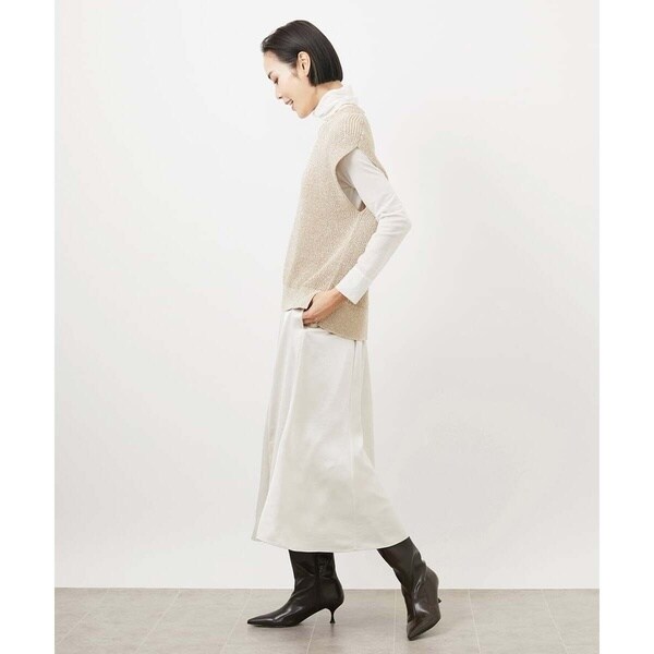 きれいめなトップスを合わせれば食事会やお仕事に最適。毛足のあるニットと素材のコントラストを活かしたスタイリングもおすすめです。ツヤのある素材感はいつものコーデをブラッシュアップしてくれます。