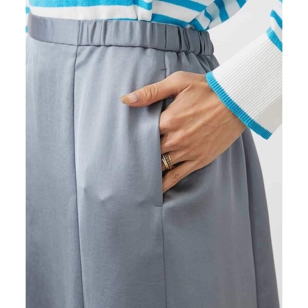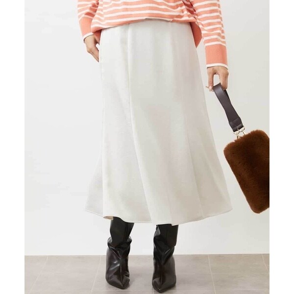 ウエストがゴムギャザー仕様のイージーな着用感がポイントのフレアースカート。腰回りはすっきりとして裾に向かって優しく広がりを見せる ややマーメイドなシルエットが特徴です。オールシーズン素材で着用期間が長く見込めるのも嬉しいポイント。40サイズは限定店舗展開です。