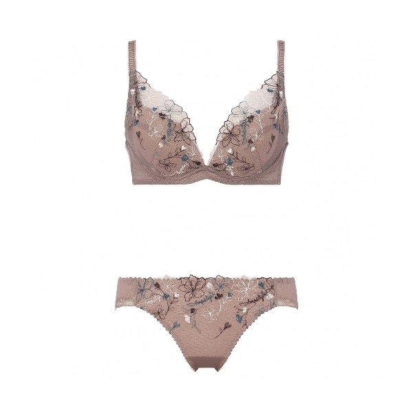 カップ下側のパターンをシャープなライン(容量が少ない)に設計しているので、バストを内側にプッシュして谷間を作ります。