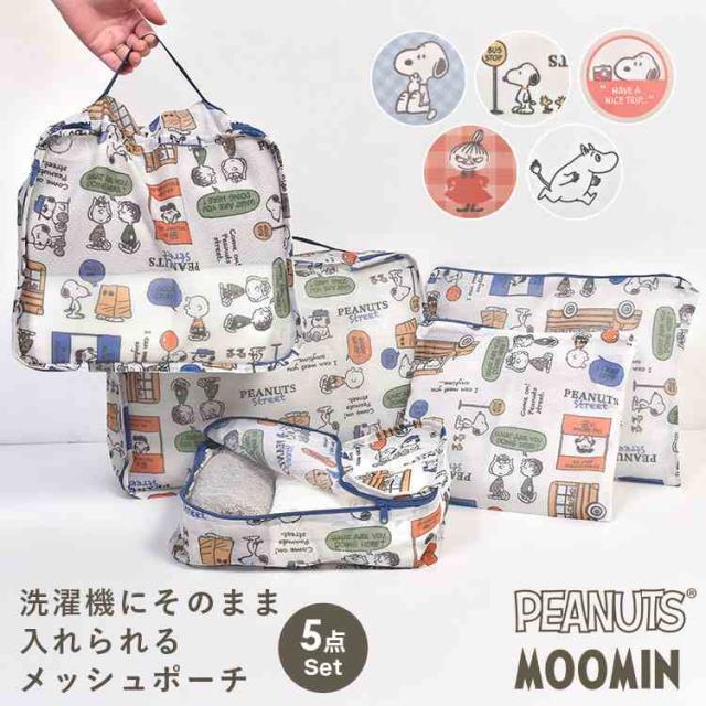 トラベルポーチ 5点 セット スヌーピー ムーミン SNOOPY メッシュ かわいい 旅行グッズ 洗濯可能 大容量 衣類 服 下着 収納 仕分け 整理整頓 旅行用 洗濯ネット 兼用 キャラクター ピーナッツ PEANUTS MOOMIN レディース 女性 パッキング 収納袋 コンパクト 温泉 ジム 出張