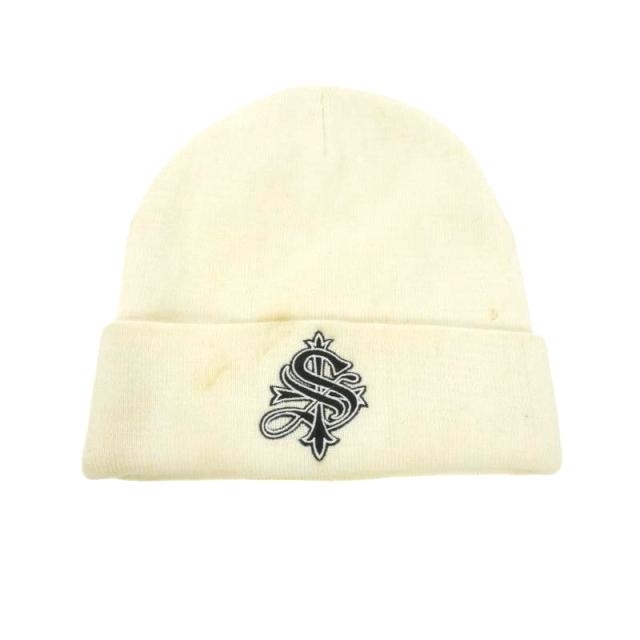 【中古】サプライヤー SUPPLIER クロスロゴ ニット帽 ニットキャップ ビーニー 帽子 ホワイト 白 メンズ