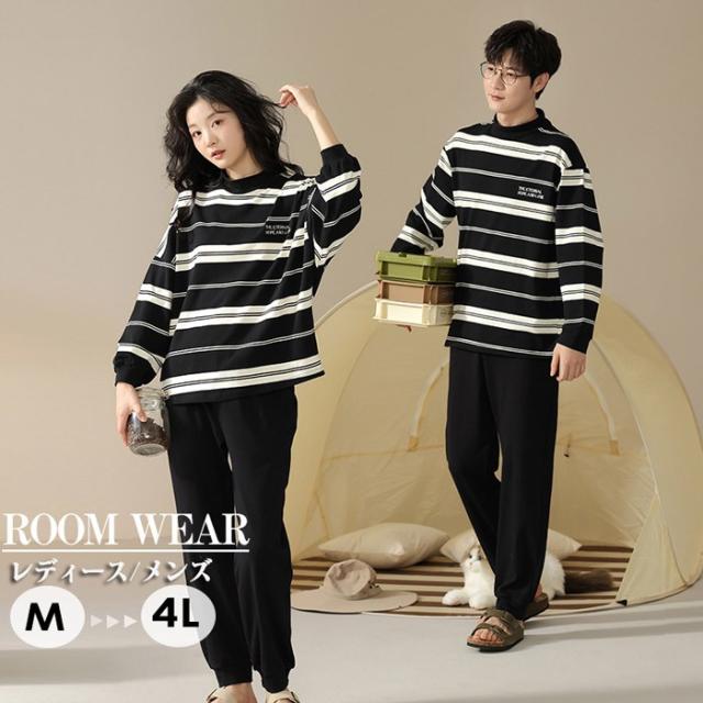 ペアパジャマ 長袖 長パンツ 綿 春 秋 トップス+パンツ ルームウェア 男性 女性 カップル 部屋着 白黒 韓国風 寝間着 ギフト プレゼント 結婚祝い おしゃれ お揃いパジャマ ペア ゆったり 寝巻き シンプル