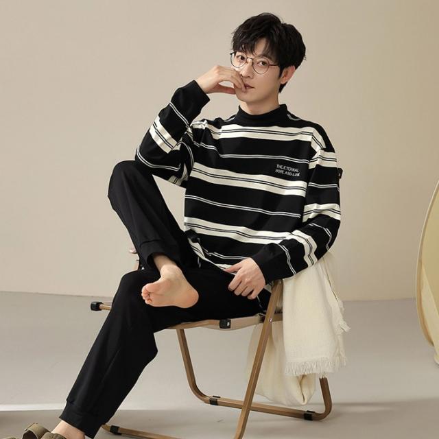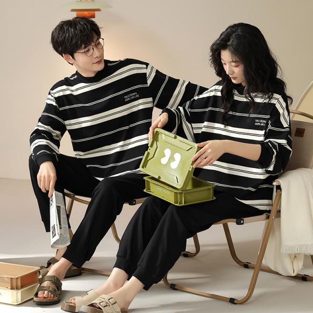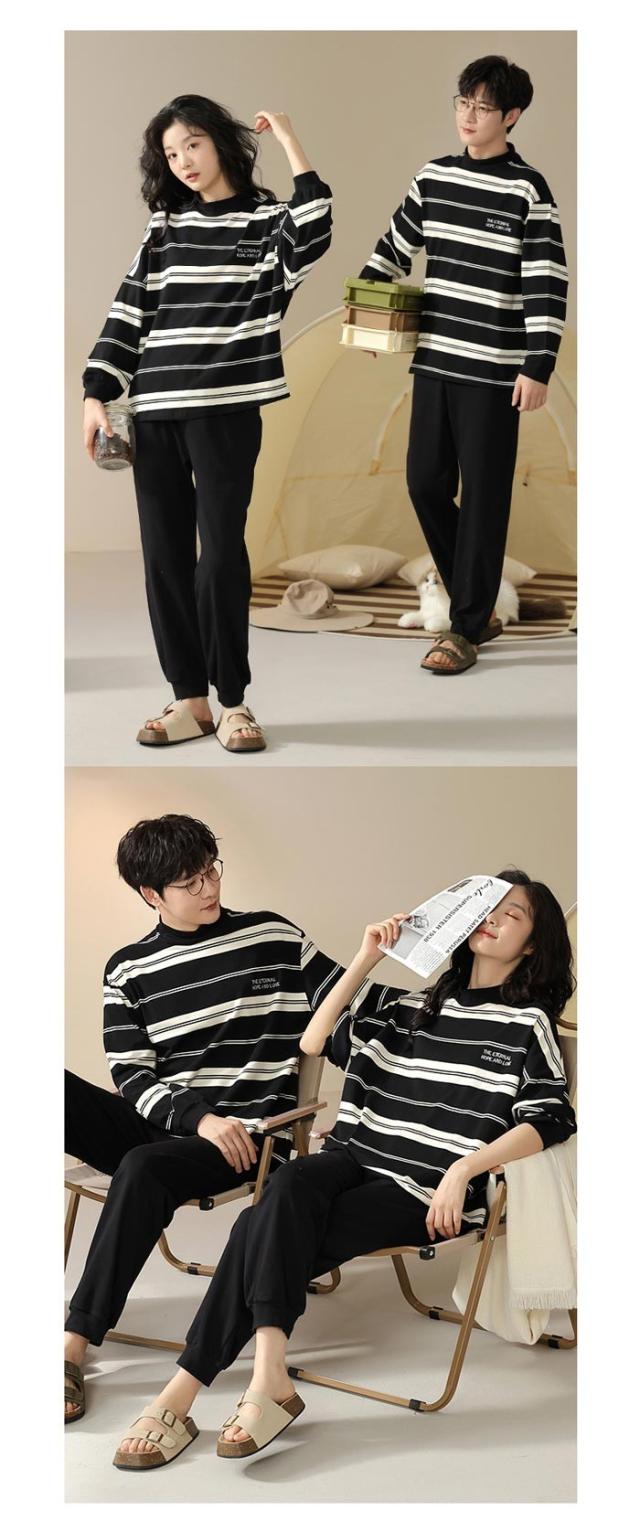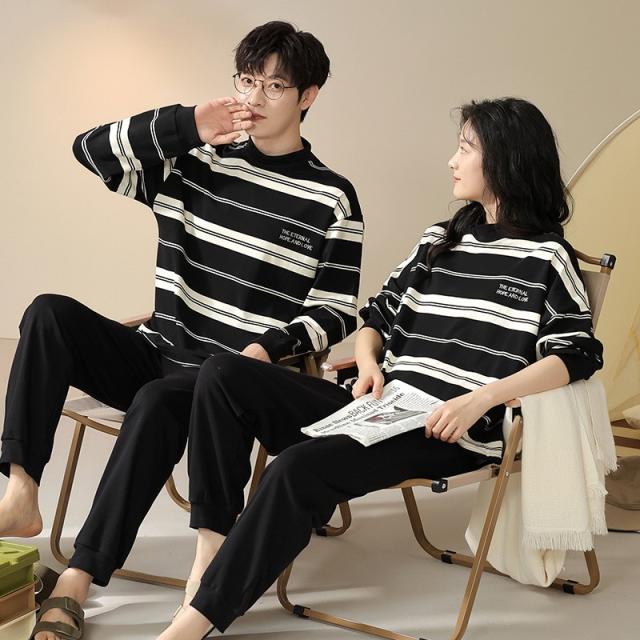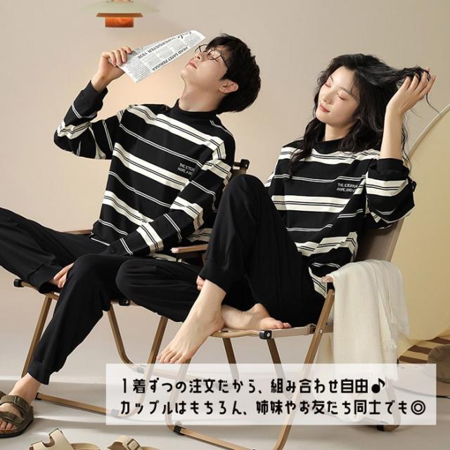 ペアパジャマ 長袖 長パンツ 綿 春 秋 トップス+パンツ ルームウェア 男性 女性 カップル 部屋着 白黒 韓国風 寝間着 ギフト プレゼント 結婚祝い おしゃれ お揃いパジャマ ペア ゆったり 寝巻き シンプル dh312c0cyh5 dh312c0