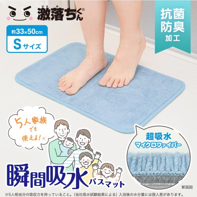 バスマット バスマット大判 お風呂マット 速乾 タオル地 足ふきマット 浴室マット 洗面所マット 激落ち 激落ちくん 瞬間吸水 ブルー Sサイズ