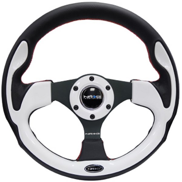NRG Reinforced Steering Wheel (320mm) Blk w/White Trim & 4mm 3-Spoke