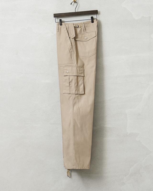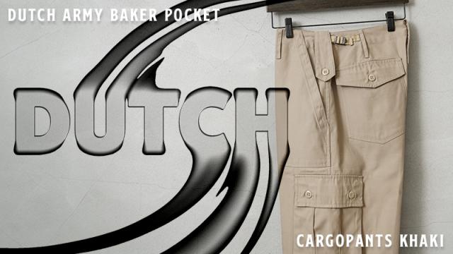オランダ軍から放出されたベイカーパンツとカーゴパンツの特徴的なデザインが凝縮されたパンツです。COMME des GARCONS JUNYA WATANABE MANの2004 S/Sで、このパンツがデザインソースとして使用されたのではないかと思わずにはいられない酷似した作りのベイカーポケット、カーゴポケット、バックポケット、個性際立つベルトループのデザインなど、ほぼ同じデザインのカーゴパンツです。このシーズンでは様々な国や年代のミリタリーアイテムがアレンジされたコレクションだったということで、このパンツもその中の1つとしてサンプリングされたのかもしれません。