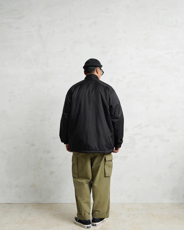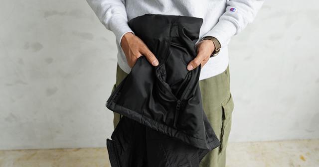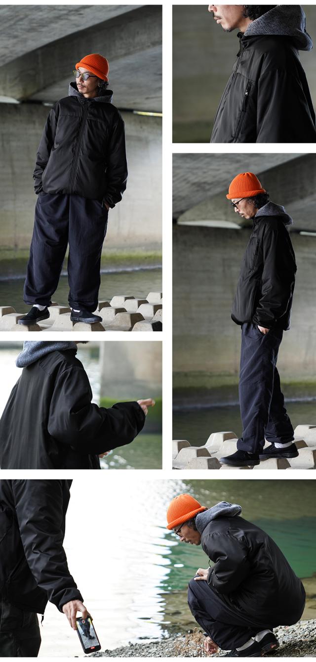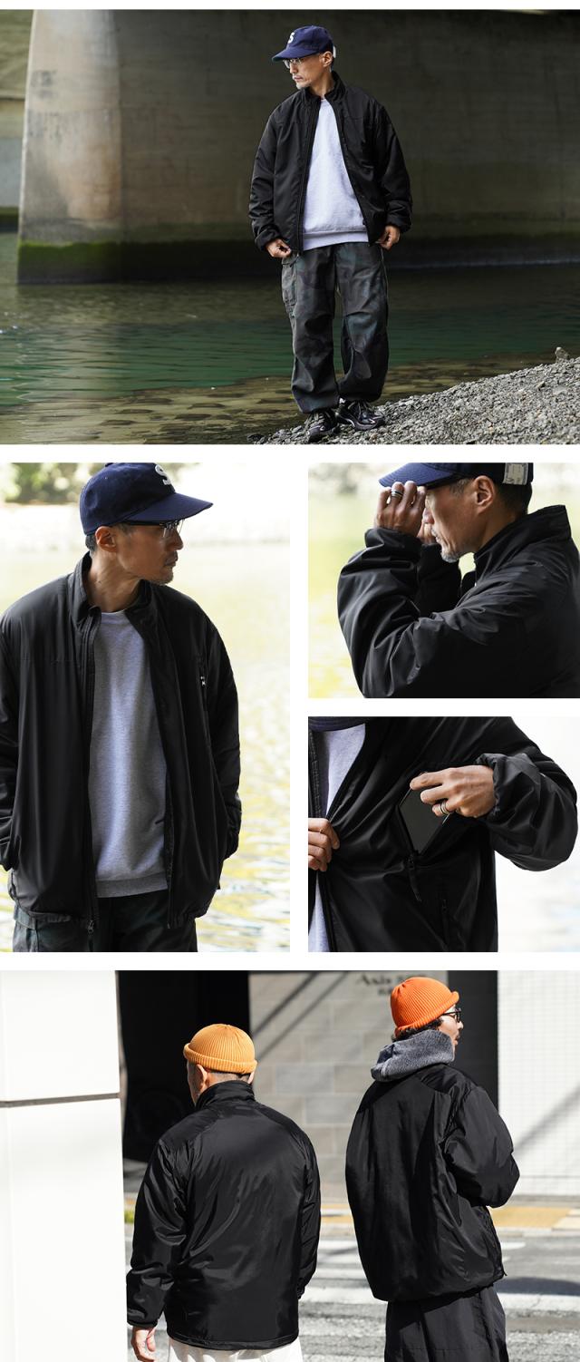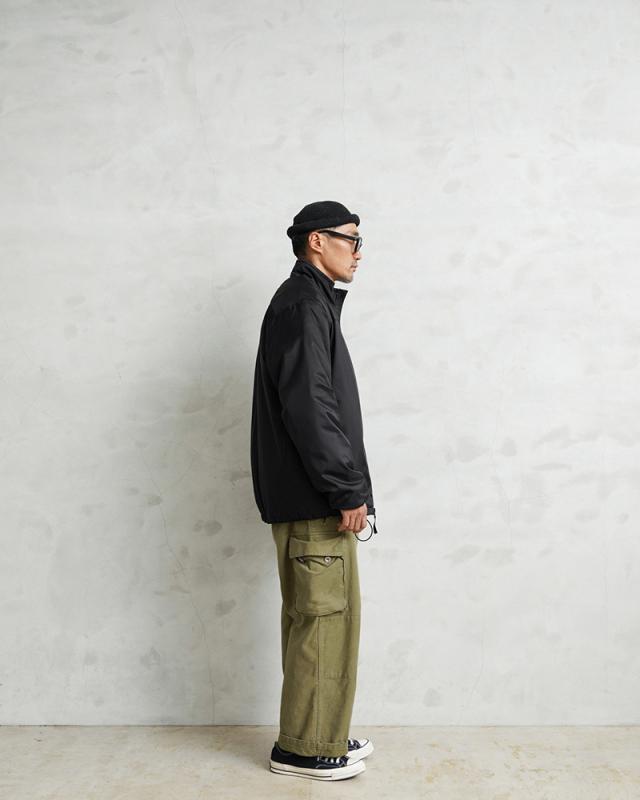 シンプルなスタンドカラーのジャケットは、胸と両サイドに使い勝手の良いジップポケットを搭載したシンプルなデザイン。裾のドローコードによりフィット感を高めることが可能となっています。後ろ身頃にオフセットした脇のパネルラインやヨーク部分などシンプルながらもカッティングにこだわった部分も再現。