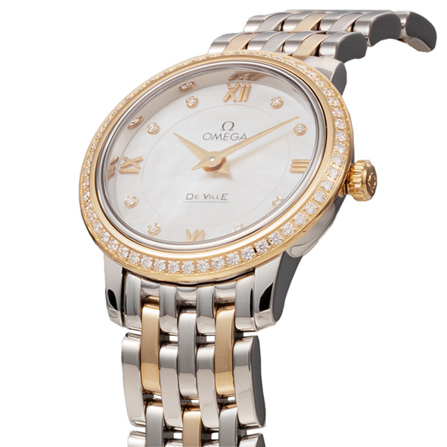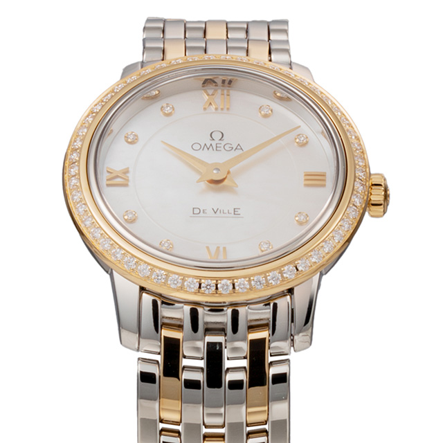 オメガ デ・ヴィル プレステージ 24.5mm クォーツ 電池式 腕時計 ブランド レディース ダイヤモンド OMEGA 424.25.24.60.55.001 アナログ ホワイトシェル シルバー イエローゴールド 白 スイス製