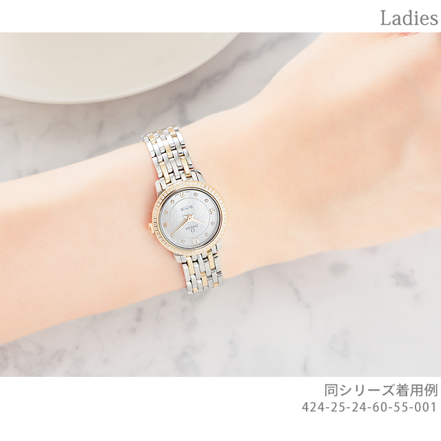 5年保証キャンペーン オメガ デ・ヴィル プレステージ 24.5mm ダイヤモンド スイス製 レディース 腕時計 424.25.24.60.55.001 OMEGA De Ville Prestige アナログ ホワイトシェル シルバー イエローゴールド 白 ◆オメガは1848年、ルイ・ブランがスイスに時計工房を創設したことから始まります。1894年に発表した懐中時計のムーブメント、「Ω(オメガ/達成と極致の意)」という言葉を正式な社名として採用しました。 スピードマスターは、アポロ11号で月面に降り立った宇宙飛行士の腕に装備されていたことから、“月面で着用された最初の時計”として知られています。 オメガ「デ・ヴィル プレステージ」コレクションは、そのクラシカルでエレガントなデザインが、多くのオメガ愛好家を惹きつけています。豪華な仕上げとタイムレスなデザインを備えたシンプルなスタイルが特徴です。ダイアルはホワイトマザーオブパールが採用されています。