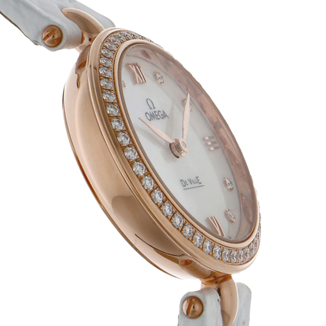 オメガ デ・ヴィル プレステージ デュードロップ 27mm クォーツ 電池式 腕時計 ブランド レディース ダイヤモンド OMEGA 424.58.27.60.55.002 アナログ ホワイトシェル ホワイト 白 スイス製