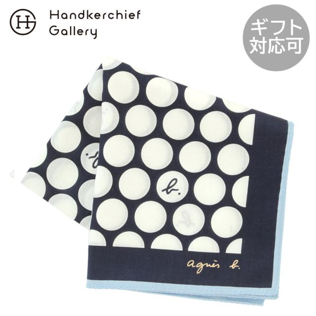 アニエスベー 大判 プリント ハンカチ 水玉(58cm) ネイビー 【agnes b】