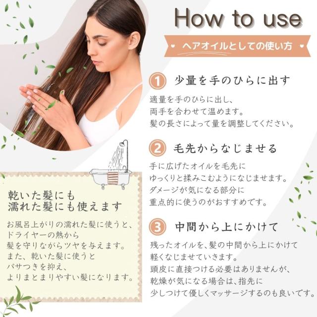 髪にはツヤと潤いを与え、毛先のパサつきや広がりを抑えます。