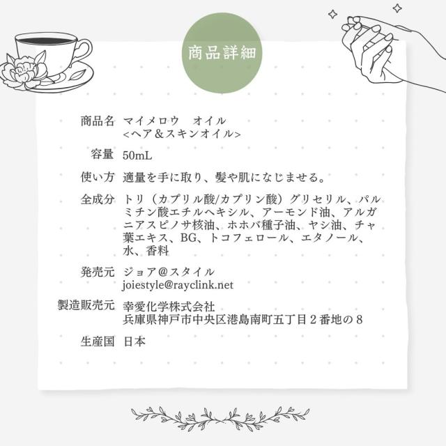 かっさコーム付 スキン&ヘアオイル マイメロウオイル 50mL オイルケア ギフト