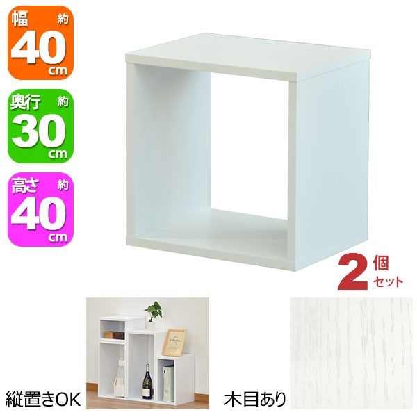 オープンラック 1段 40×40 2個セット 奥行30cm A4対応 収納 棚 ホワイト 白 おしゃれ 組み合わせ自由 幅40cm 高さ40cm 頑丈 耐荷重20kg 積み重ね 収納 ラック ディスプレイラック 卓上ラック 飾り棚 本棚 コミック 漫画 雑誌 アクスタ 机上ラック モニター台 木製