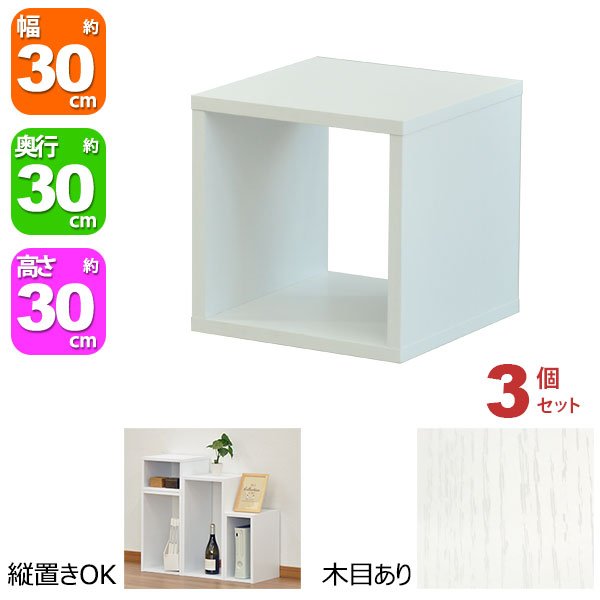 オープンラック 1段 30×30 3個セット 奥行30cm 収納 棚 ホワイト 白 おしゃれ 組み合わせ自由 幅30cm 高さ30cm 頑丈 耐荷重20kg 積み重ね 収納 ラック ディスプレイラック 卓上ラック 飾り棚 本棚 コミック 漫画 文庫本 雑誌 アクスタ 机上ラック モニター台 木製