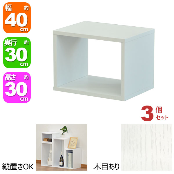 オープンラック 1段 40×30 3個セット 奥行30cm A4対応 収納 棚 ホワイト 白 おしゃれ 組み合わせ自由 幅40cm 高さ30cm 頑丈 耐荷重20kg 積み重ね 収納 ラック ディスプレイラック 卓上ラック 飾り棚 本棚 コミック 漫画 雑誌 アクスタ 机上ラック モニター台 木製