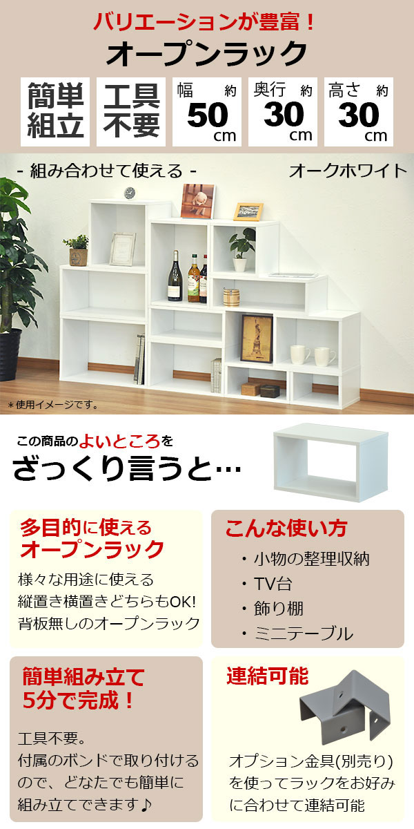 オープンラック 1段 50×30 3個セット 奥行30cm A4対応 収納 棚 ホワイト 白 おしゃれ 組み合わせ自由 幅50cm 高さ30cm 頑丈 耐荷重20kg 積み重ね 収納 ラック ディスプレイラック 卓上ラック 飾り棚 本棚 コミック 漫画 雑誌 アクスタ 机上ラック モニター台 木製