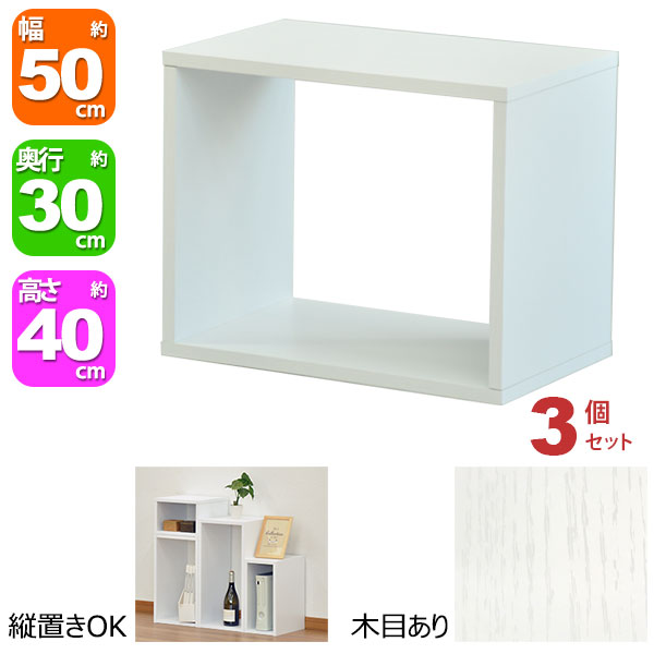 オープンラック 1段 50×40 3個セット 奥行30cm A4対応 収納 棚 ホワイト 白 おしゃれ 組み合わせ自由 幅50cm 高さ40cm 頑丈 耐荷重20kg 積み重ね 収納 ラック ディスプレイラック 卓上ラック 飾り棚 本棚 コミック 漫画 雑誌 アクスタ 机上ラック モニター台 木製
