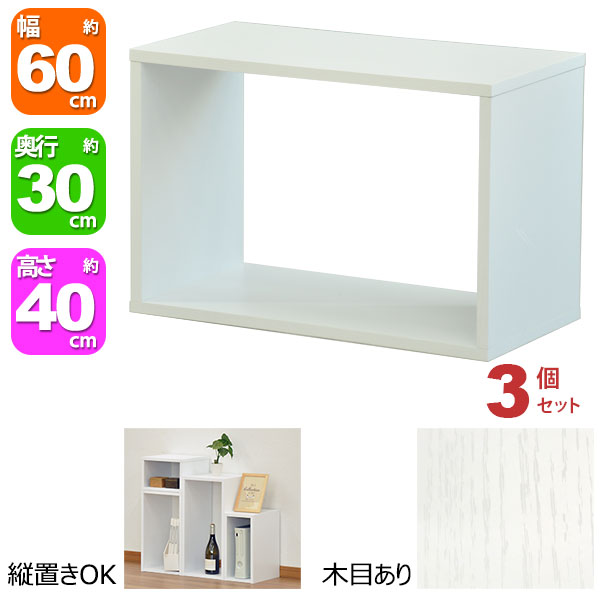 オープンラック 1段 60×40 3個セット 奥行30cm A4対応 収納 棚 ホワイト 白 おしゃれ 組み合わせ自由 幅60cm 高さ40cm 頑丈 耐荷重20kg 積み重ね 収納 ラック ディスプレイラック 卓上ラック 飾り棚 本棚 コミック 漫画 雑誌 アクスタ 机上ラック モニター台 木製