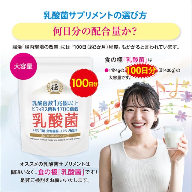 【品名】乳酸菌 【大容量 100日分】 SAVE 食の極 高純度粉末 乳酸菌 ビフィズス菌 (400g)