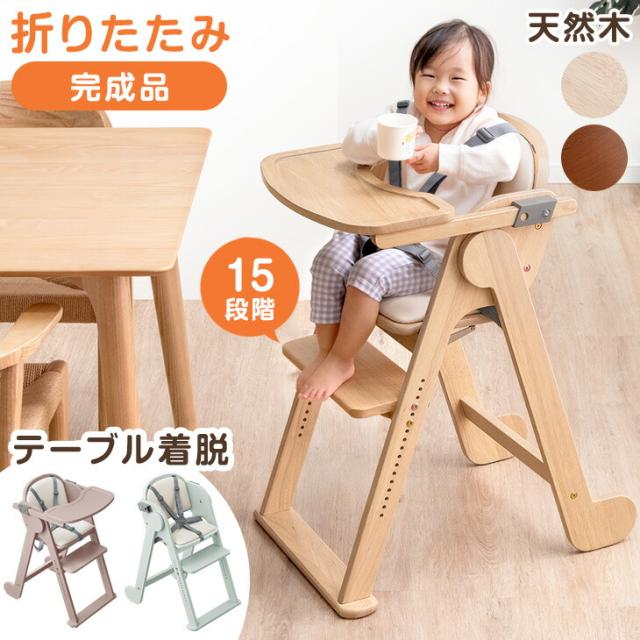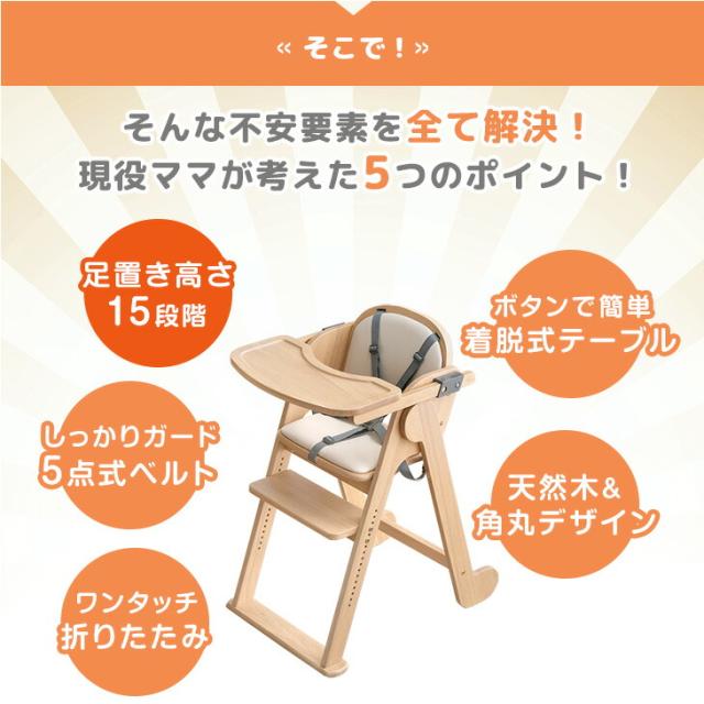 現役ママが考えた折りたたみベビーチェア 天然木 テーブル 立ち上がり防止 5点式ベルト 高さ調整 足置き クッション 付き ハイチェア グローアップチェア ダイニングチェア チェア いす 椅子 木 木製 子供 赤ちゃん ベビー キッズ