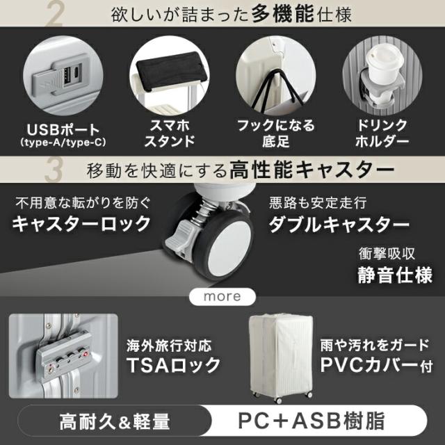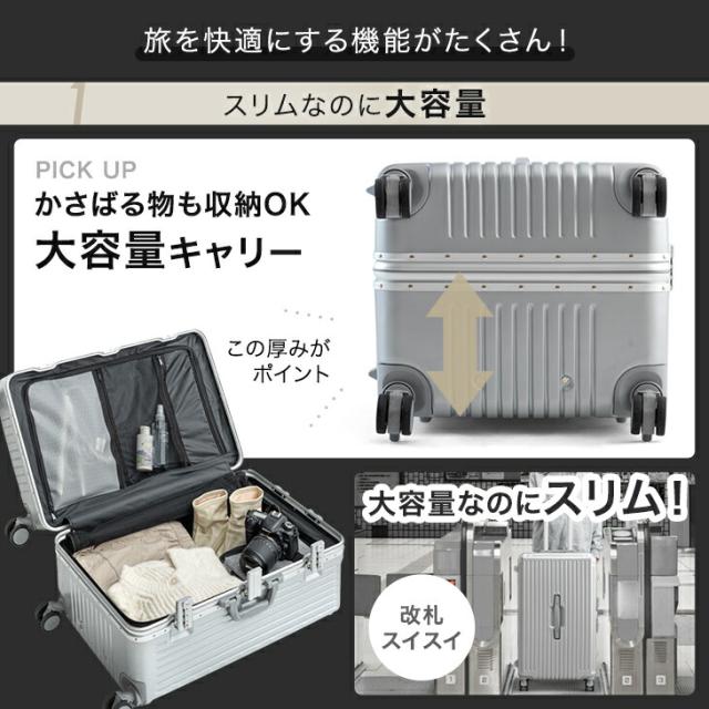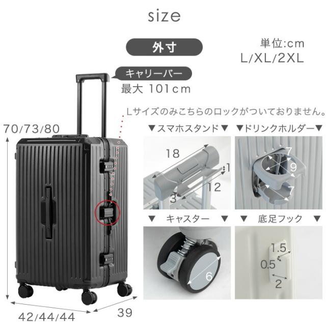 大容量 多機能 キャリーケース 頑丈 アルミフレーム Lサイズ アルミ USB type-c カップホルダー スマホスタンド ストッパー付き スーツケース キャリーバッグ L おしゃれ 軽い かわいい 海外旅行