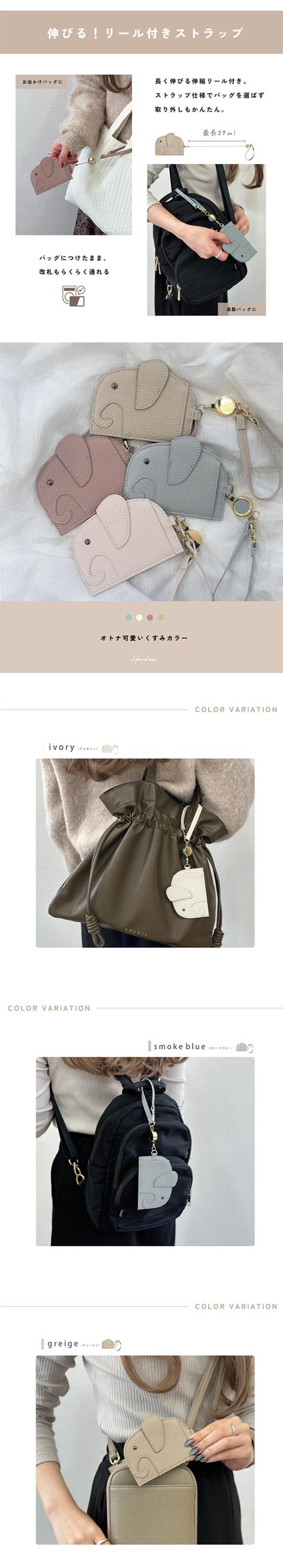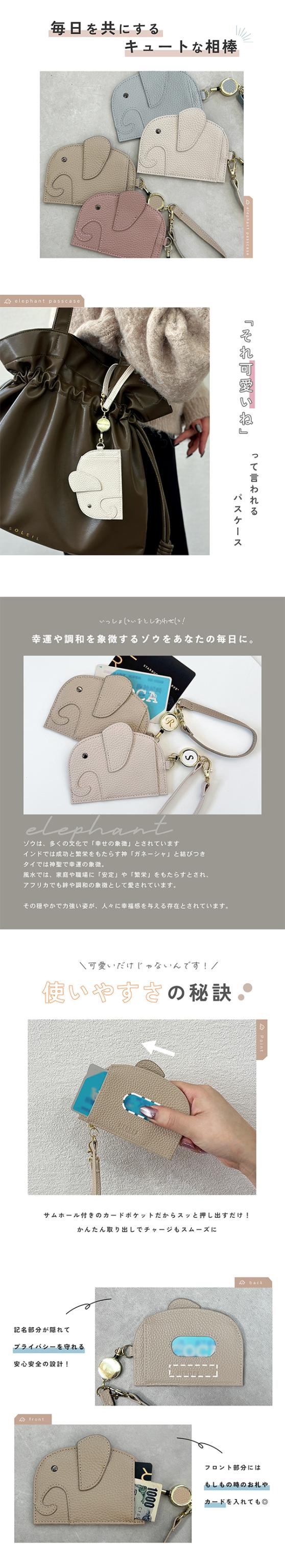パスケース カードケース 牛革 ぞうさん レディース レザー 象 ゾウ 薄型 ケース アニマル 定期入れ IDケース 社員証 2枚 定期ケース 学生証 ICカード icカード 駅 バス 電車 通勤 通学 リール付き 伸びる ストラップ 伸縮