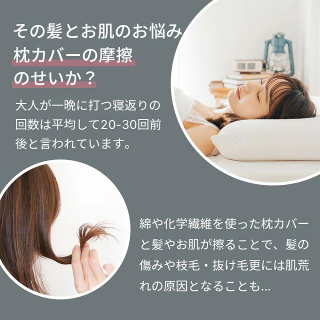 柔らかく滑らかな質感が特徴のシルク素材を使用し、敏感肌の方でも安心してご使用いただけます。心地よい触り心地で、翌朝には髪の絡まりが軽減され、さらさらな髪を実感できます。