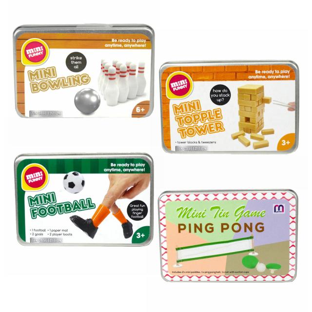 テーブルゲーム ミニゲームティン ボーリング バランスタワー サッカー ピンポン ( ゲーム おもちゃ 玩具 子ども キッズ 遊び コンパクト 持ち運び オモチャ 卓上 テーブル ミニチュア ケース付き イベント 景品 )