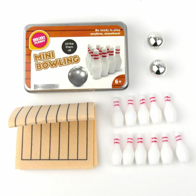 卓上や床などでサッと持ち出して遊べる、ミニチュアサイズのボーリングです。