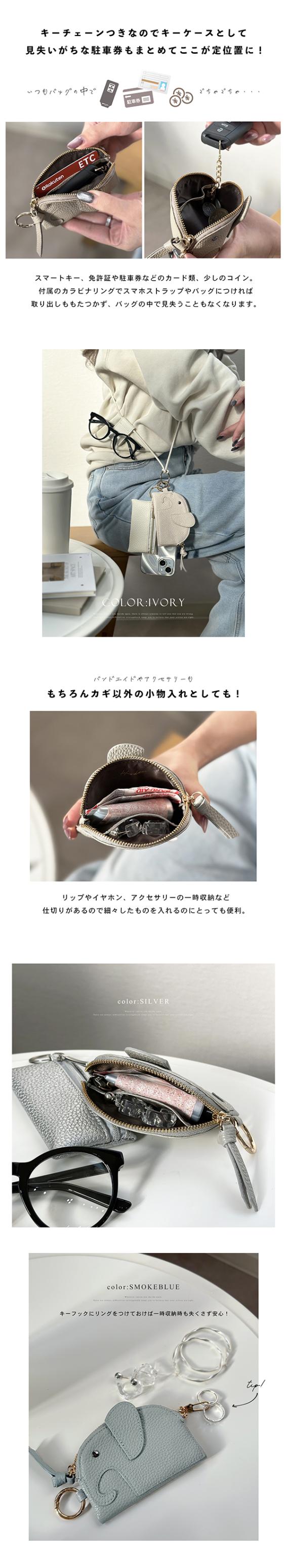 キーケース ミニ財布 カードケース 牛革 スマートキー ぞうさん レディース コインケース レザー 財布 象 ゾウ 薄型 ケース ポーチ マルチケース 小銭入れ キーリング 鍵 リモコンキー マルチポーチ かわいい 便利 送料無料