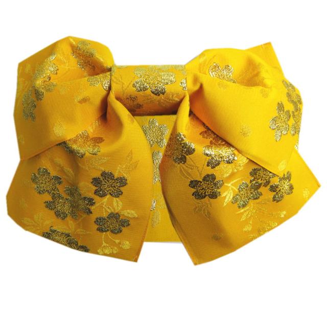 結び帯 付け帯 作り帯 濃黄色地金糸入り桜さくら 日本製 浴衣 ゆかた 簡単 巻いてポン 女性用 レディース むすび帯 つくり帯 桜柄 ラメ入り