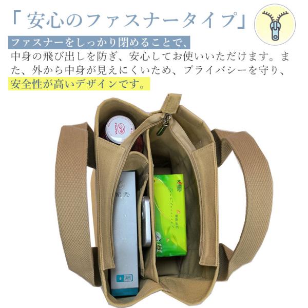 安心のファスナータイプ: ファスナーをしっかり閉めることで、中身の飛び出しを防ぎ、安心してお使いいただけます。外から中身が見えにくいため、プライバシーを守り、安全性が高いデザインです。